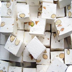 Подсохшую нугу нарежьте кусочками.